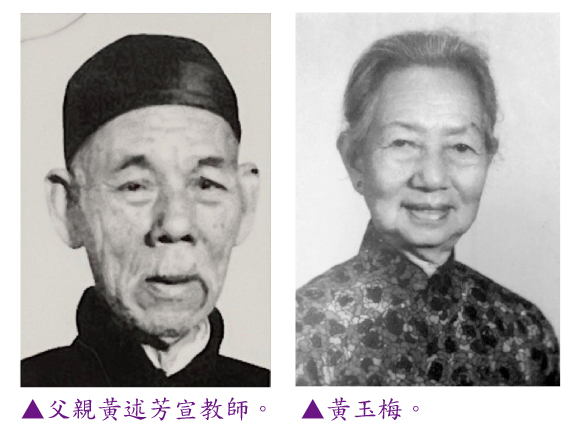 1898年,父親黃述芳(1856 - 1945)加入剛成立之新界傳道會,成為首位華人宣教師。是年年底,孻女黃玉梅出生。十年後,女兒完成初小,入讀英華女校,積極參與女青在該校設立的學生組織「華光團」。自此,與女青結下深厚關係,1925年起加入幹事部工作。