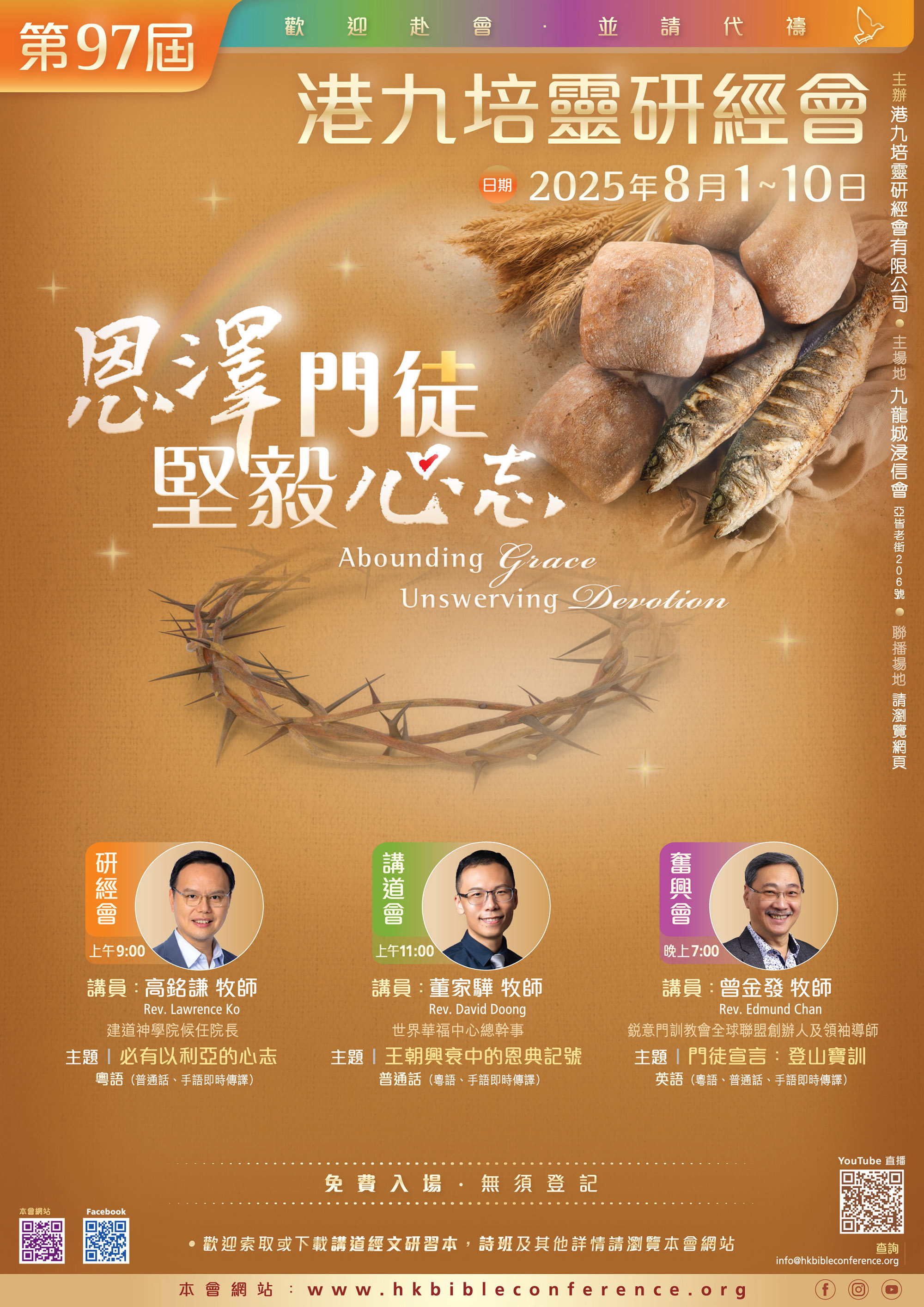 有關網上直播連結、講道經文研習本、每晚詩班資料及其他詳情,可瀏覽:www.hkbibleconference.org。