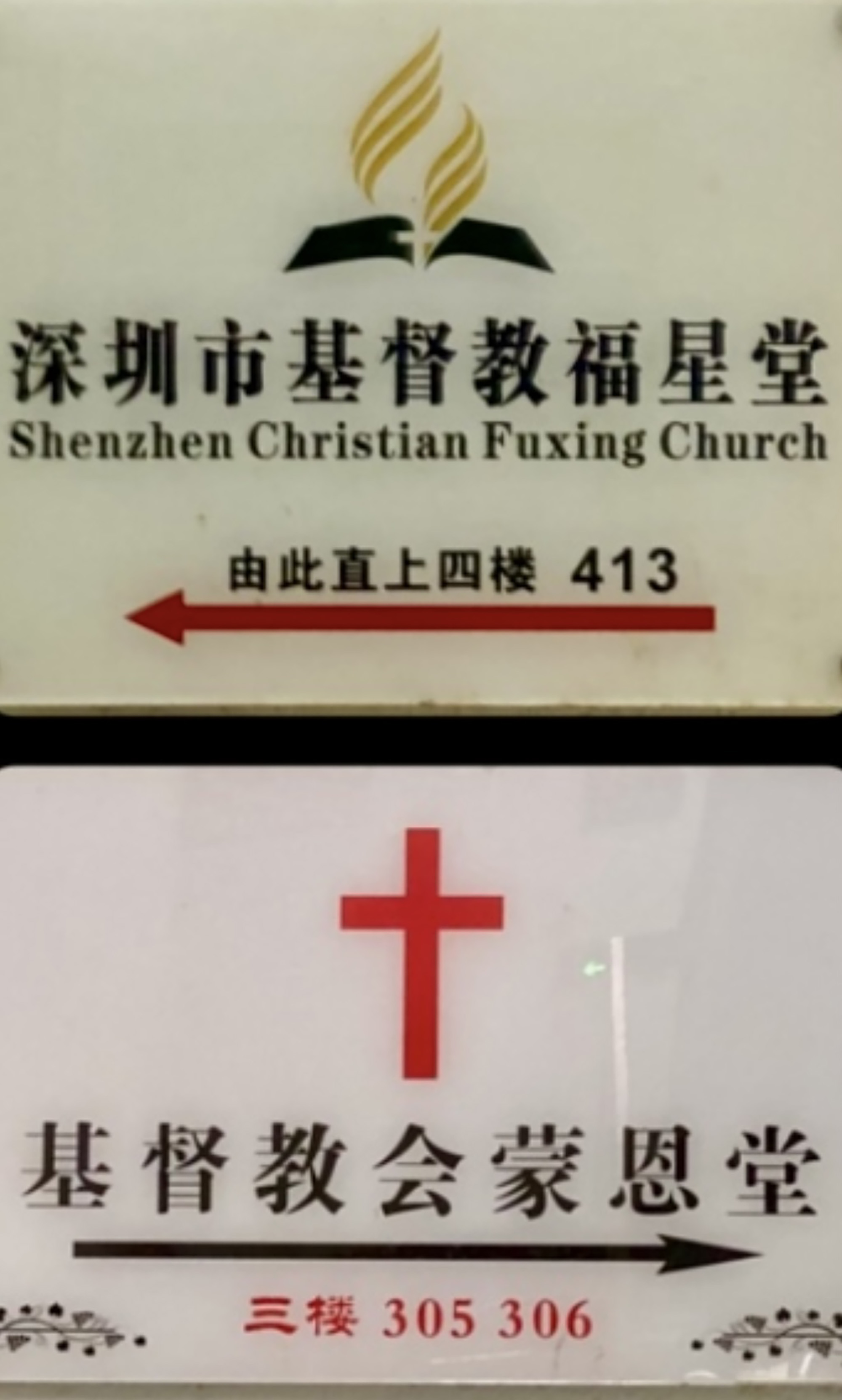 走上華強路站C 出口地面,旁邊是福虹路;依着本文附圖走,只需拐過兩個彎,大概十分鐘步程,就來到福星路旁的福星花園大厦。抬頭一覽這座大型物業,外牆竟有大字標示的兩間教會:基督教會蒙恩堂、基督教福星堂。