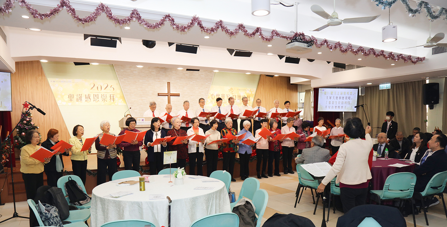 崇拜由周翠梅女士帶領唱詩、楊有恆牧師祈禱、區玉君牧師讀出約翰福音十四章二十七節經文,今年由聯會會員堂退休教牧團契詩班獻詩,與長者們一同讚美上帝。