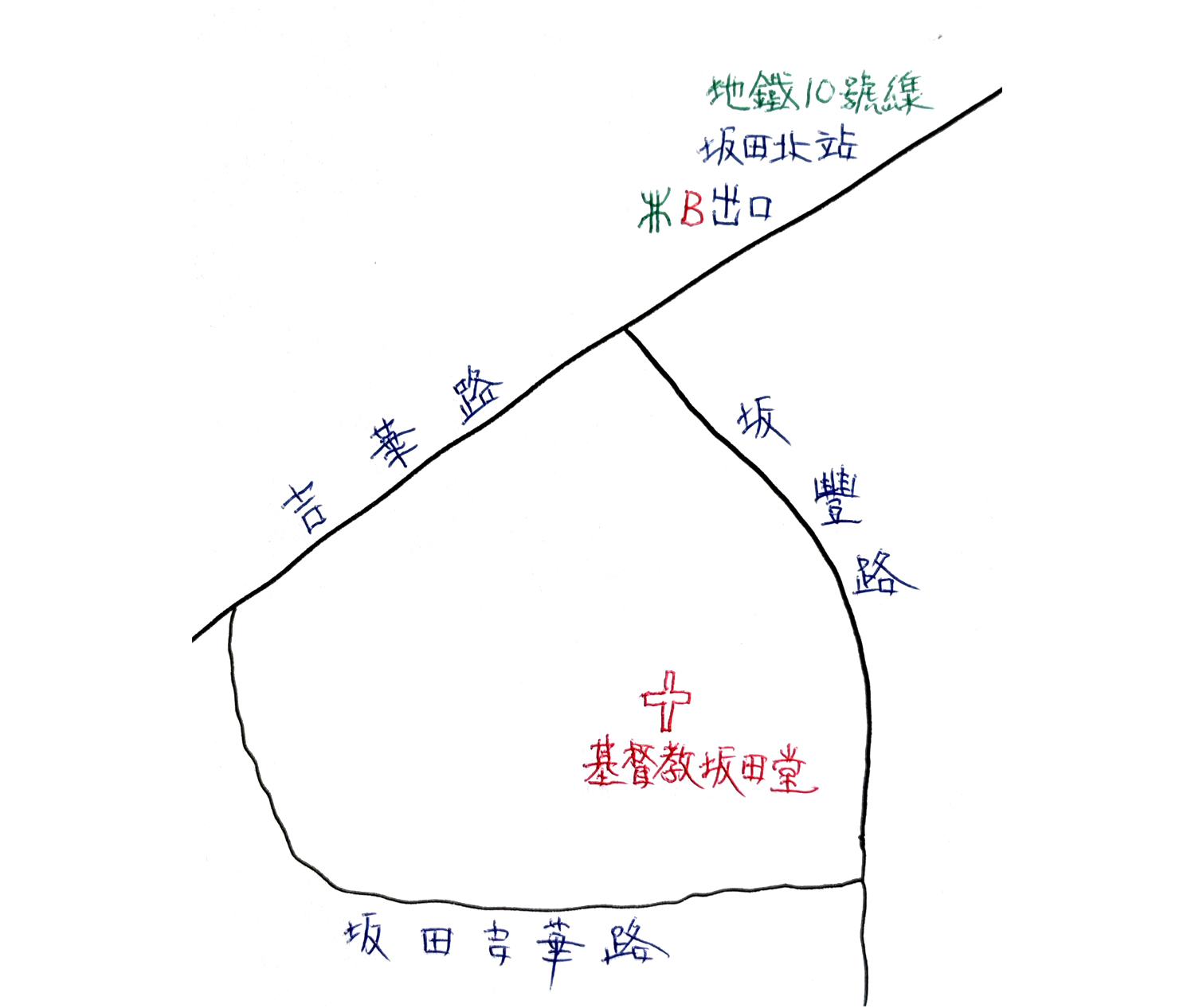 由落馬州—福田口岸入境深圳,到了口岸大樓的地面層,依着指引的路標走出大樓,前去就在旁邊的地鐵10號線福田口岸站。這個是始發站,登上車廂都是對的行駛方向。乘坐十站去到坂田北站 ,由B出口上到地面,旁邊是吉華路。依着本文附圖所示走,大約十分鐘步程,就來到「基督教坂田聚會點」。